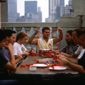 Red ribbons were created by the thousands at "ribbon bees"—gatherings of Artists' Caucus members, friends and supporters working together to cut, fold ribbons and pin ribbons for national distribution. When requests became too large to handle, other groups were engaged to participate, including the formation of the Armory Ribbon Bee Project, organized by artists Hope Sandow and Frank Moore, in which homeless women at the Park Avenue Shelter were paid weekly to make tens of thousands of ribbons.